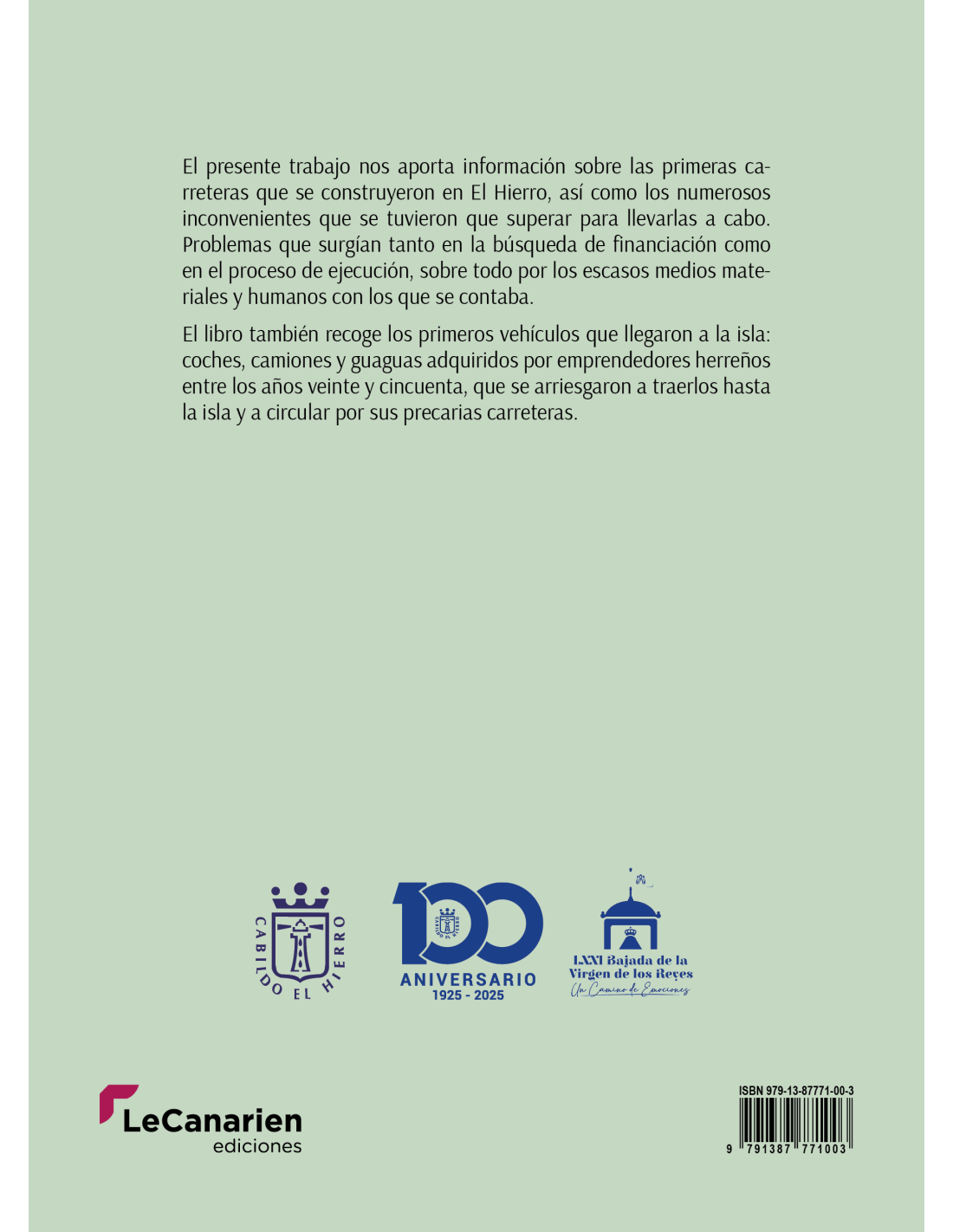 El presente trabajo nos aporta información sobre las primeras carreteras que se construyeron en El Hierro, así como los numerosos inconvenientes que se tuvieron que superar para llevarlas a cabo. Problemas que surgían tanto en la búsqueda de financiación como en el proceso de ejecución, sobre todo por los escasos medios materiales y humanos con los que se contaba.
